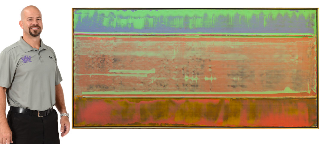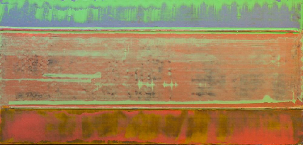 ACHIMORE, Stephen, (American, 1953-): ''Triple Play'', Mixed Media/Canvas, 43 3/4'' x 90'', signed, titled and dated verso, thin edge wood frame, 45'' x 91 1/2''.