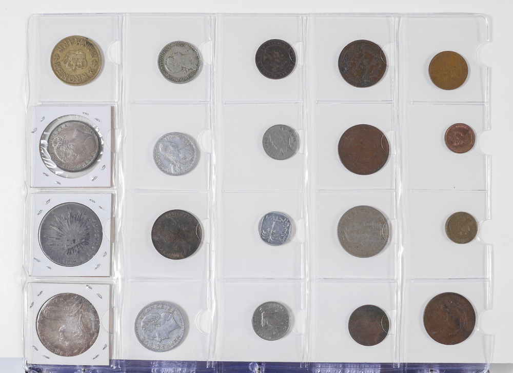 LARGE COLLECTION OF FOREIGN COINS: A large collection of non-US coins, all ungraded, a couple of highlights to include 1882 Queen Victoria Young Head Silver Half Crown; 1875 Cap & Sunburst Mexican Silver 8 reales; Restrike of a 1780 Maria Theresa Thaler, and much, much more.