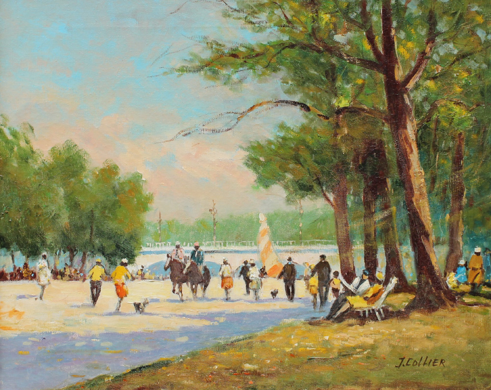 J. COLLIER PAINTING AFTERNOON IN THE PARK: Oil/Canvas, 16'' x 20'', signed lower right, fine contemporary framing, 23.5'' x 27.5''