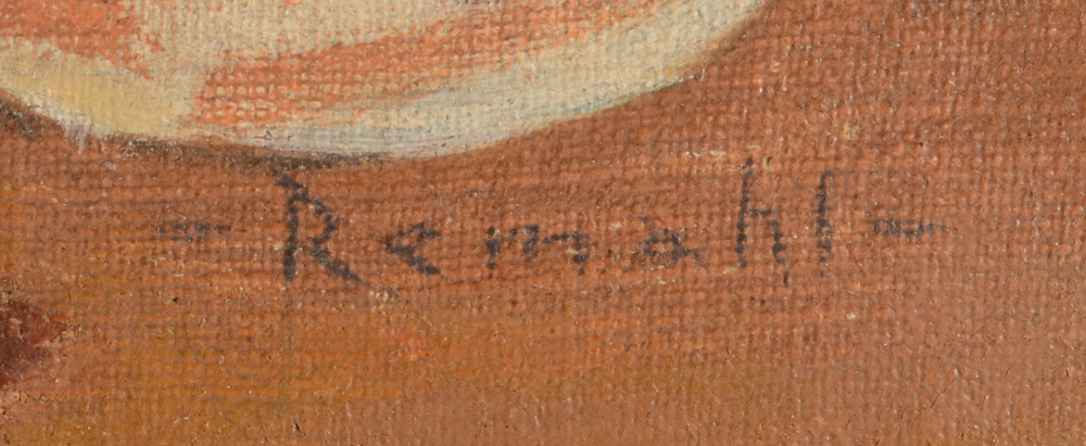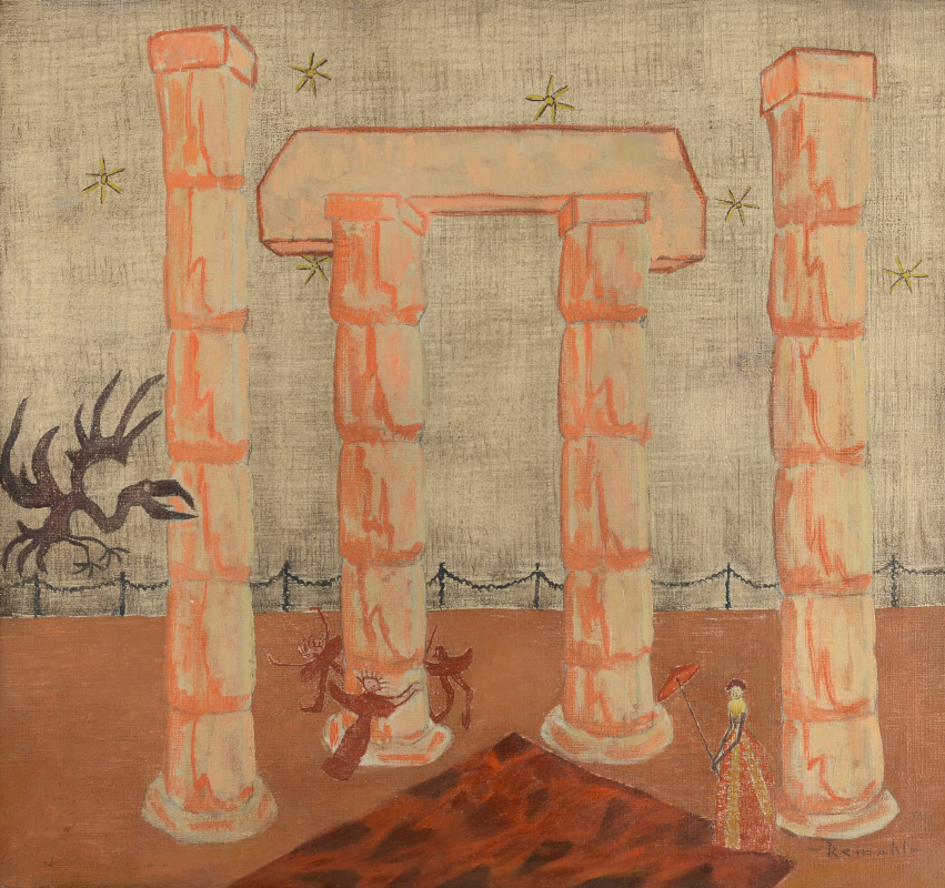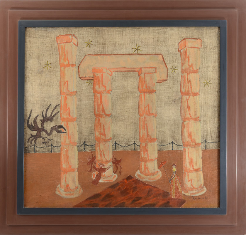 REMAHL, Frederick, (Swedish, 1901-68): ''Figures and Doll in Column Ruins'', Oil/Canvas, 24'' x 26'', signed lower right, Sullivan Goss label affixed verso, fine custom framing, 31.25'' x 33''.