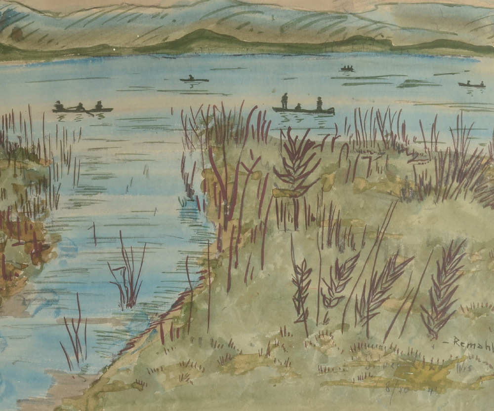 REMAHL, Frederick, (Swedish 1901-1968): 2 Lakeside Scenes, Watercolors, sight size 9.25'' x 11 1/8'', both signed, one is dated '41, matching frames, 15'' x 17''.