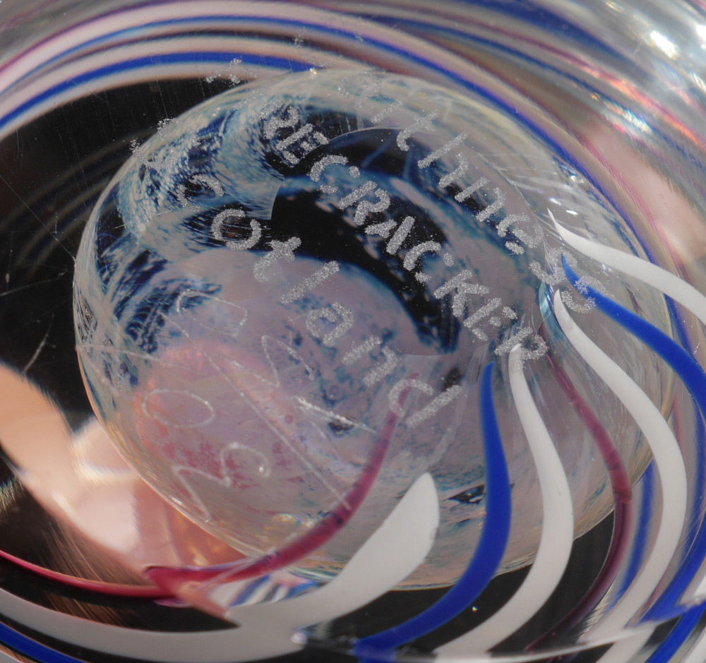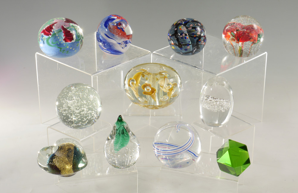 ESTATE COLLECTION OF 11 PAPERWEIGHTS: An assembled collection of 11 pieces total, signed pieces to include Caithness ''Firecracker'', Jim Karg, D. Bagwell and illegibly signed.