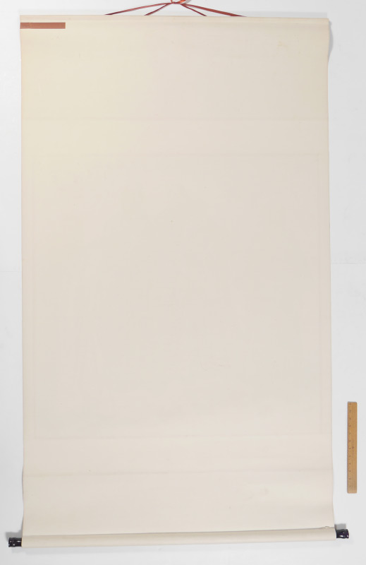 LARGE CONTEMPORARY CHINESE SCROLL PAINTING: Scene depicts Chinese Men in Chains, Watercolor, image size is 36.6'' x 37'', affixed to a silk scroll backing, overall 69'' x 44''.