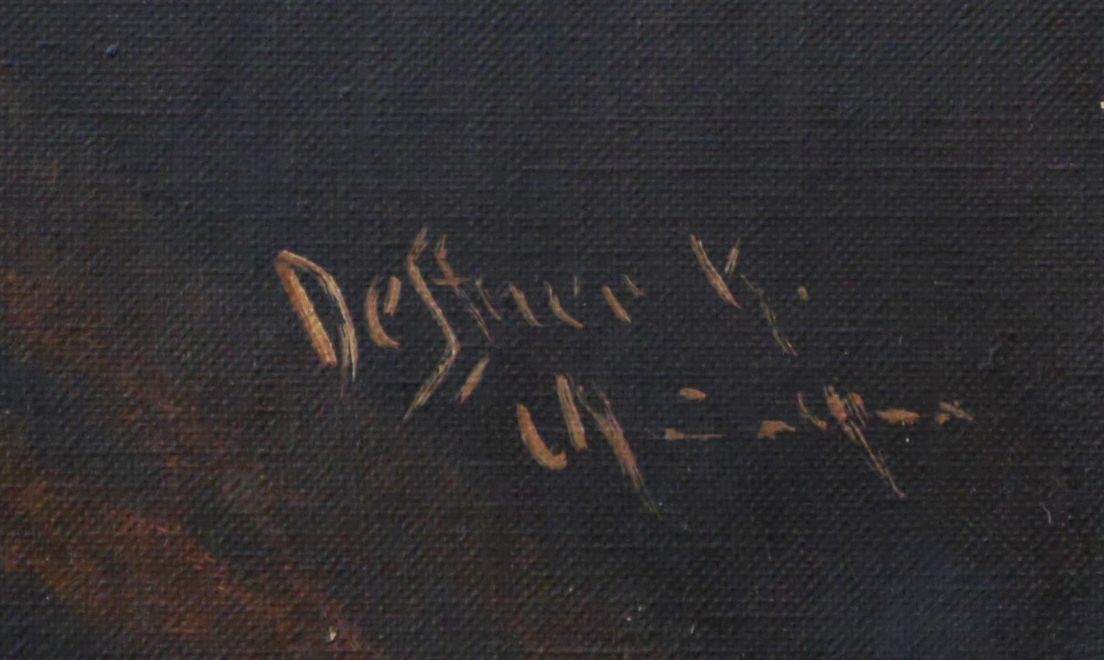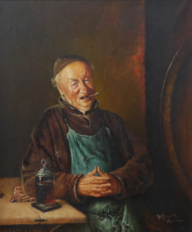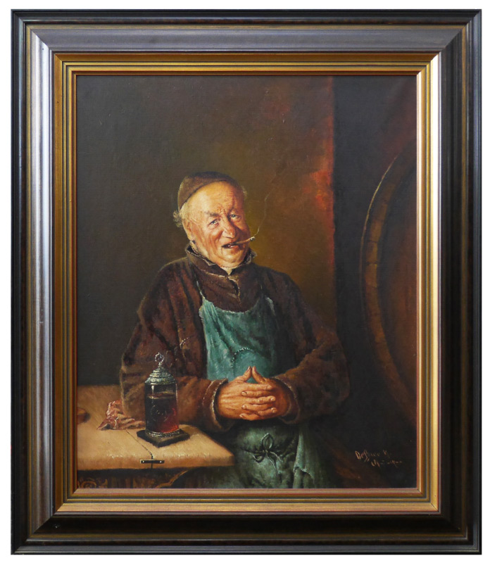 ILLEGIBLY SIGNED PAINTING OF AN ALE DRINKING CIGAR SMOKING FRIAR: Oil/Canvas, Hungarian? 23.5'' x 19.75'', signed lower right, framed 31'' x 26.5''.