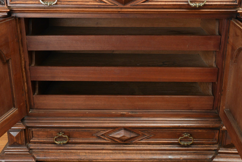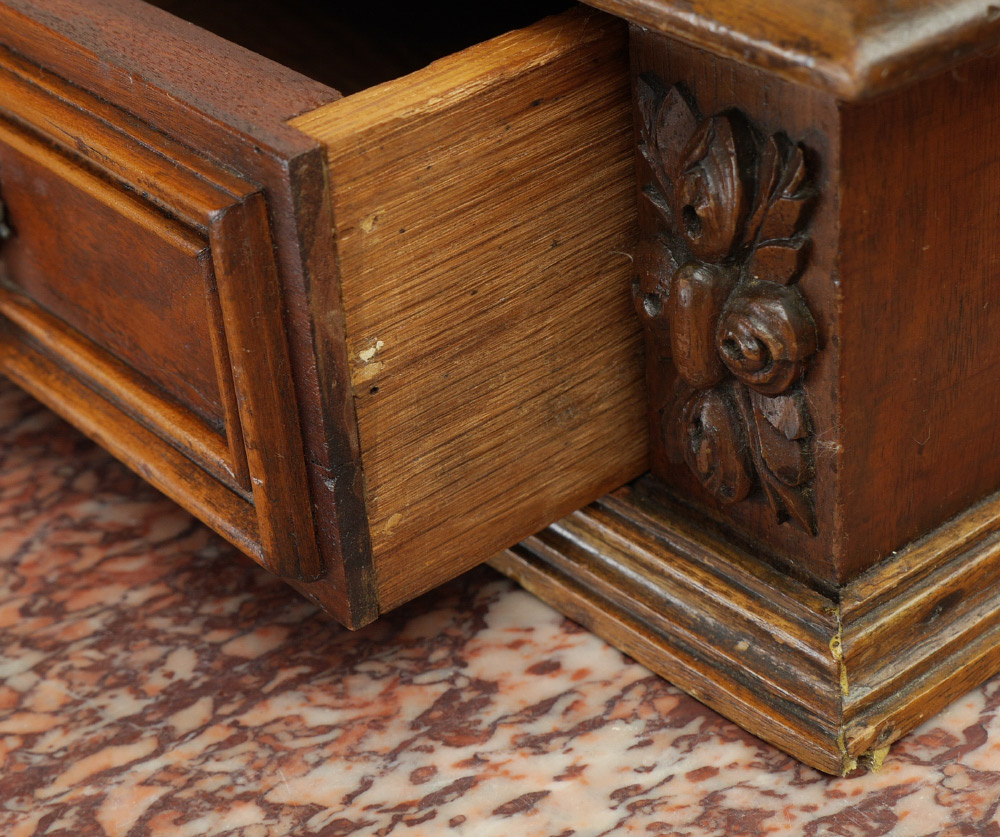 CONDITION: Lower trim missing small section, ink stains to top of glove boxes, glue repair, evidence of prior woodworm activity.