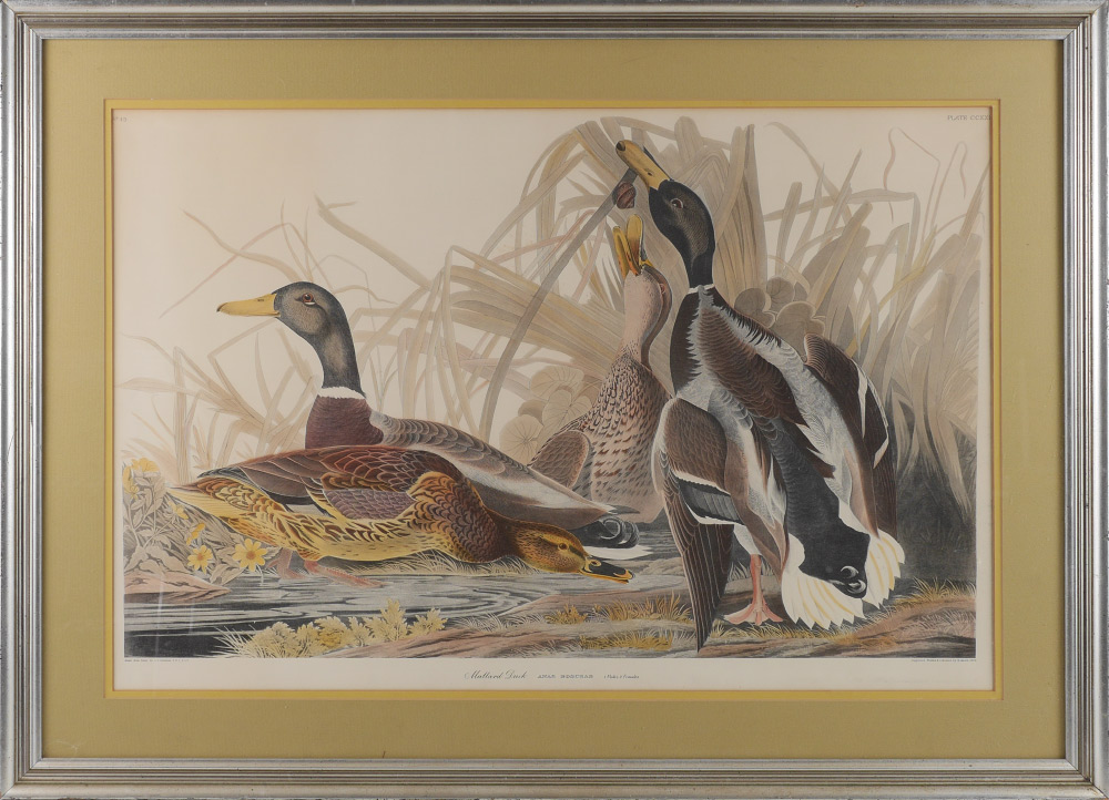 MALLARD DUCK CHROMOLITHOGRAPH AFTER AUDUBON: Published by Artistic Picture Publishing Company, NY, circa 1930, 25'' x 37.75'' with margins, framed, 31.5'' x 42.25''.