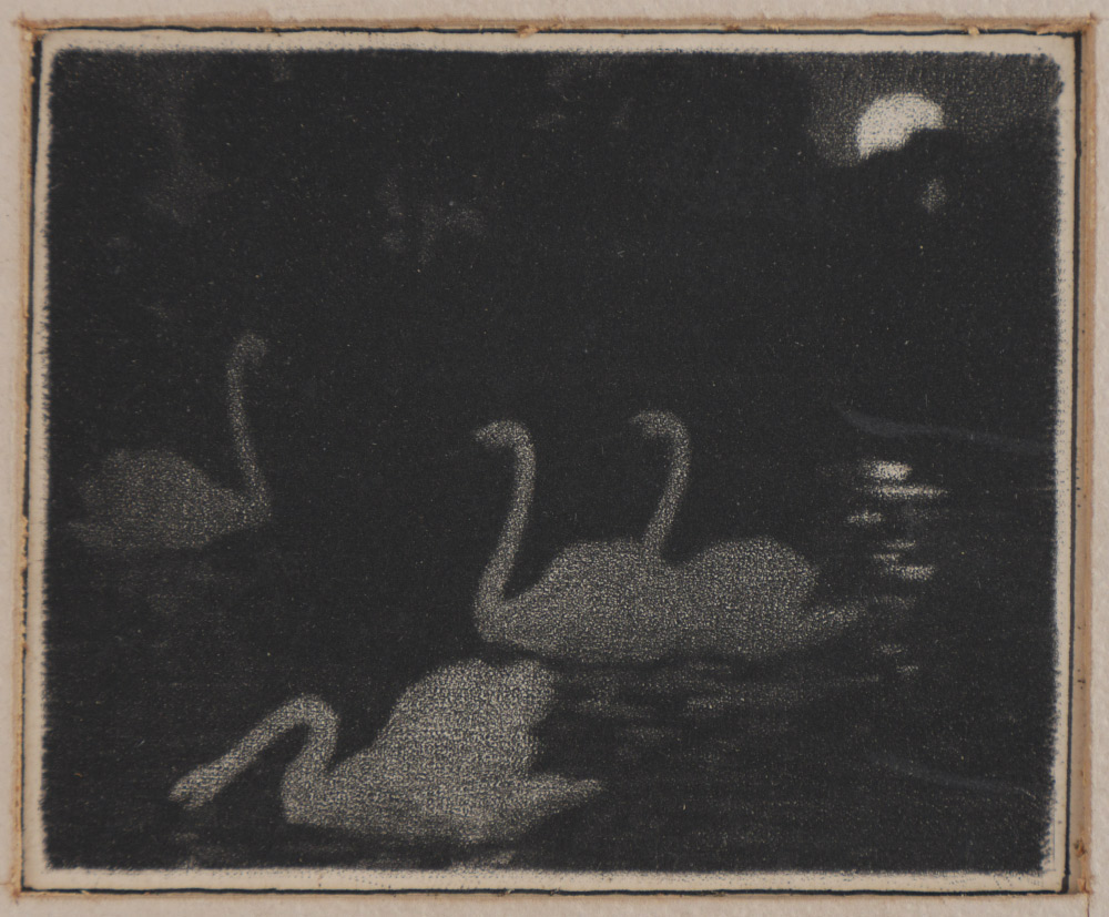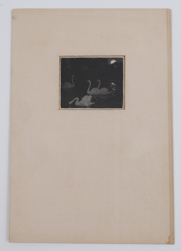 PREISSIG, Voitech (American, 1873-1944): Swans, Etching, 4.75'' x 4'' with margins, matted, 15'' x 18'', signed verso, this piece was probably produced in one Preissig's classes at the League, text in upper and lower margins. Provenance: Estate Collection of Christian Buchheit.