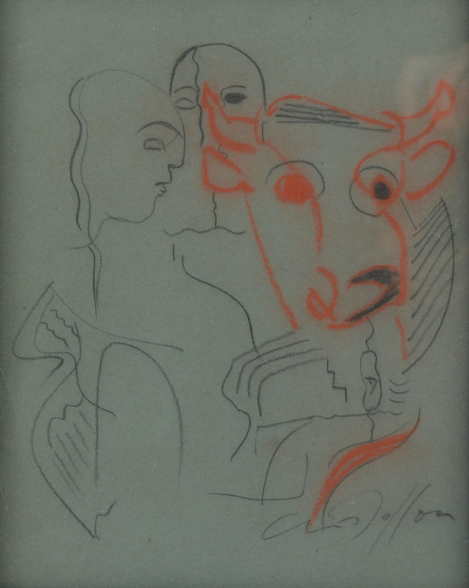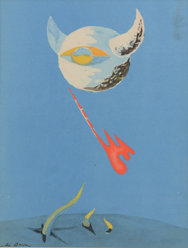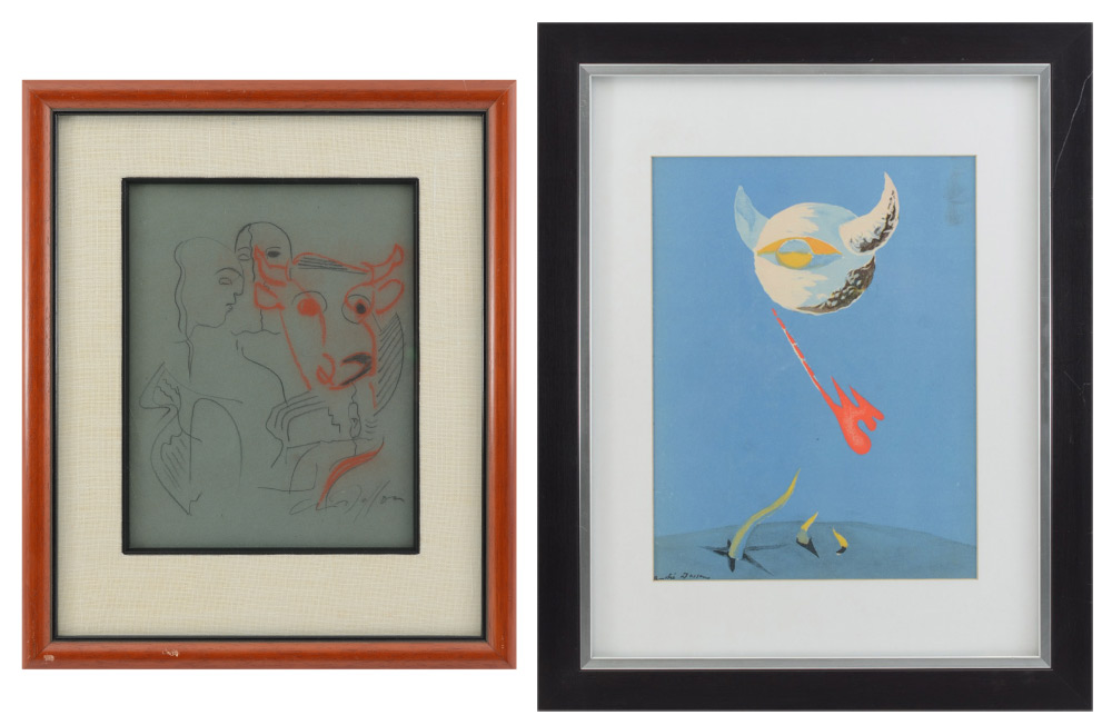 MASSON, Andre, (French/American, 1896-1987): 2 Piece Lot to include 1) Abstract Composition, pencil and red chalk drawing, 10'' x 7.75'', signed lower right, framed, 16'' x 13.25''; 2) Lithograph for Verve, 12.5'' x 9.75'', signed in the plate lower left, framed, 21'' x 16.75''.