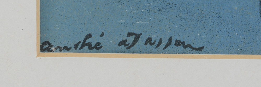 CONDITION: 2) Visible handling creases in lower left corner, pale staining, scattered, frame shows wear, sold as is.
