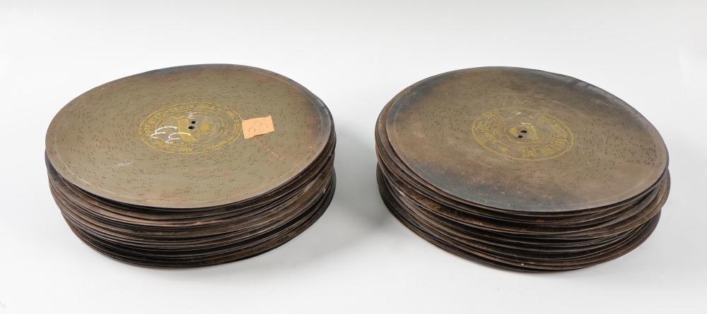 COLLECTION OF 79 MUSIC DISCS FOR SYMPHONIUM: Approx. 79 metal discs for a Symphonium player, each 13 5/8'' dia.