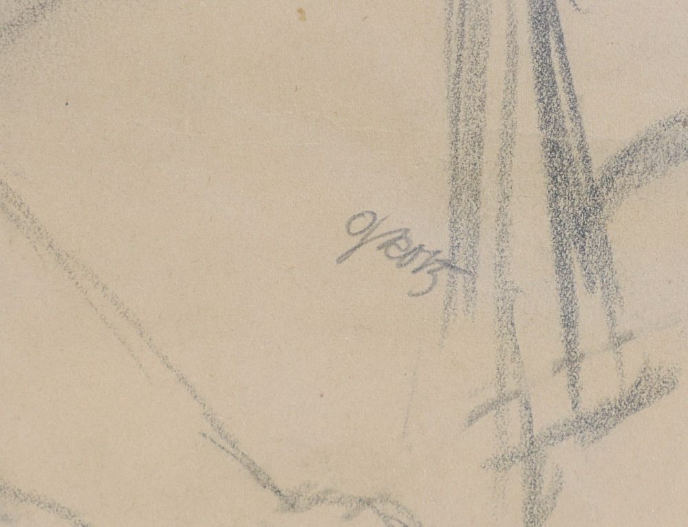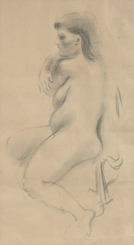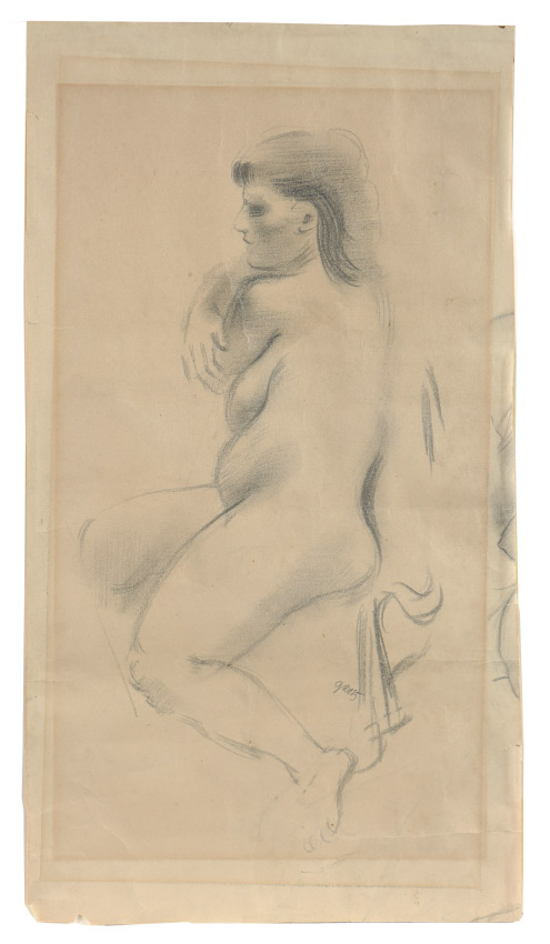 GROSZ, George (German, 1893-1959): Seated Nude Charcoal Drawing, 18'' x 10'', signed lower right, unframed. Grosz was known for his ''caricatural drawings and paintings of Berlin life in the 1920s. He was a prominent member of the Berlin Dada and New Objectivity group during the Weimar Republic. He emigrated to the United States in 1933, and became a naturalized citizen in 1938. Abandoning the style and subject matter of his earlier work, he exhibited regularly and taught for many years at the Art Students League of New York.'' - Wikipedia. Provenance: Estate Collection of Christian Buchheit.