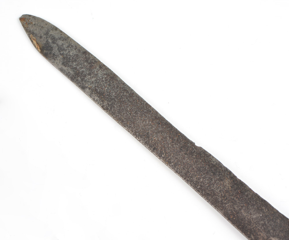 CONDITION: Extensive pitting and chips to blade, bend to tip, dings to hilt.