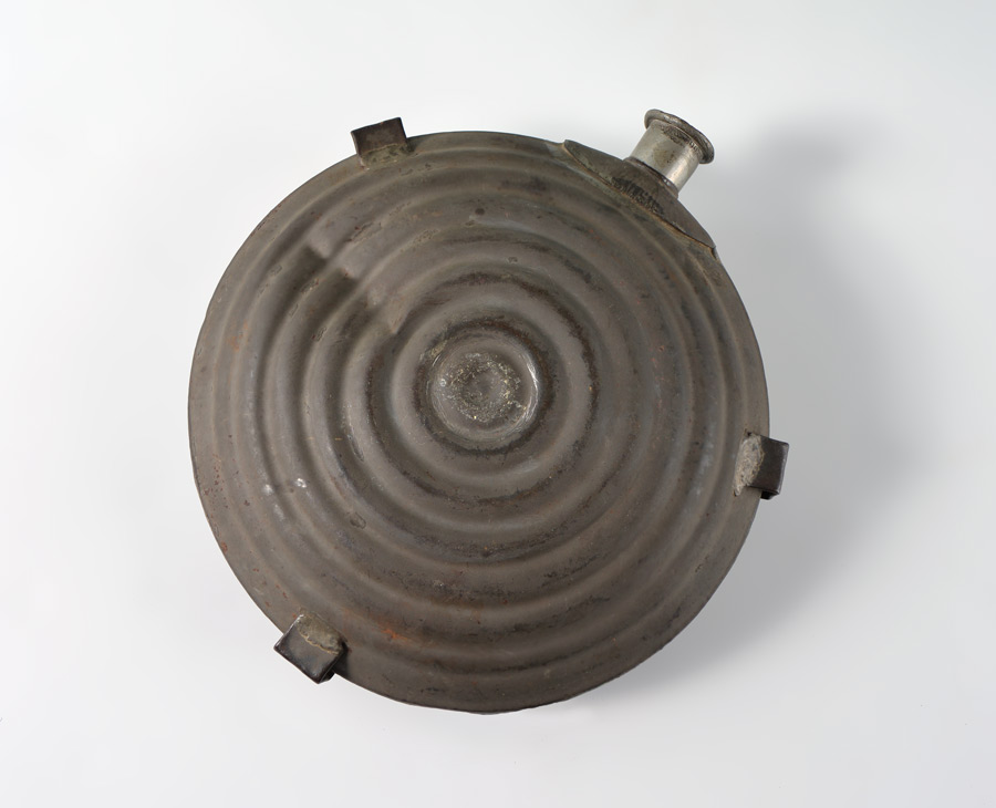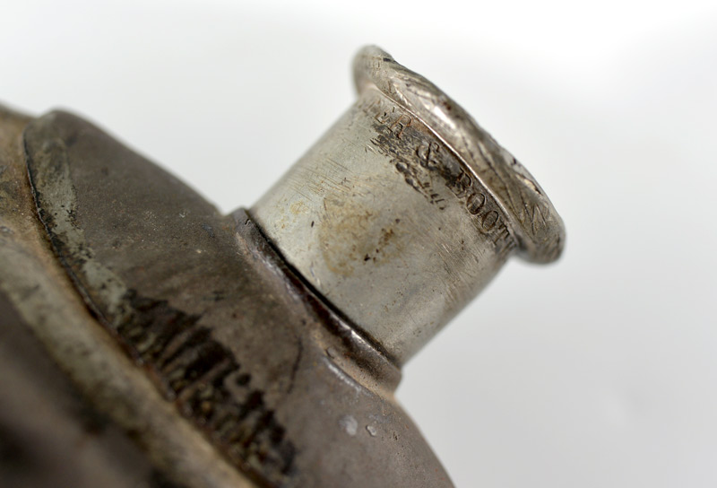 CIVIL WAR BULLSEYE CANTEEN: Model 1858, marked Hadden, Porter & Booth, Philadelphia on pewter spout, overall measures 8 3/4'' x 7 1/2'' x 2 1/2''.