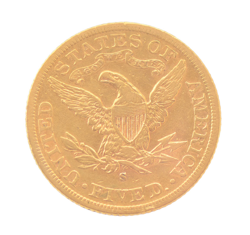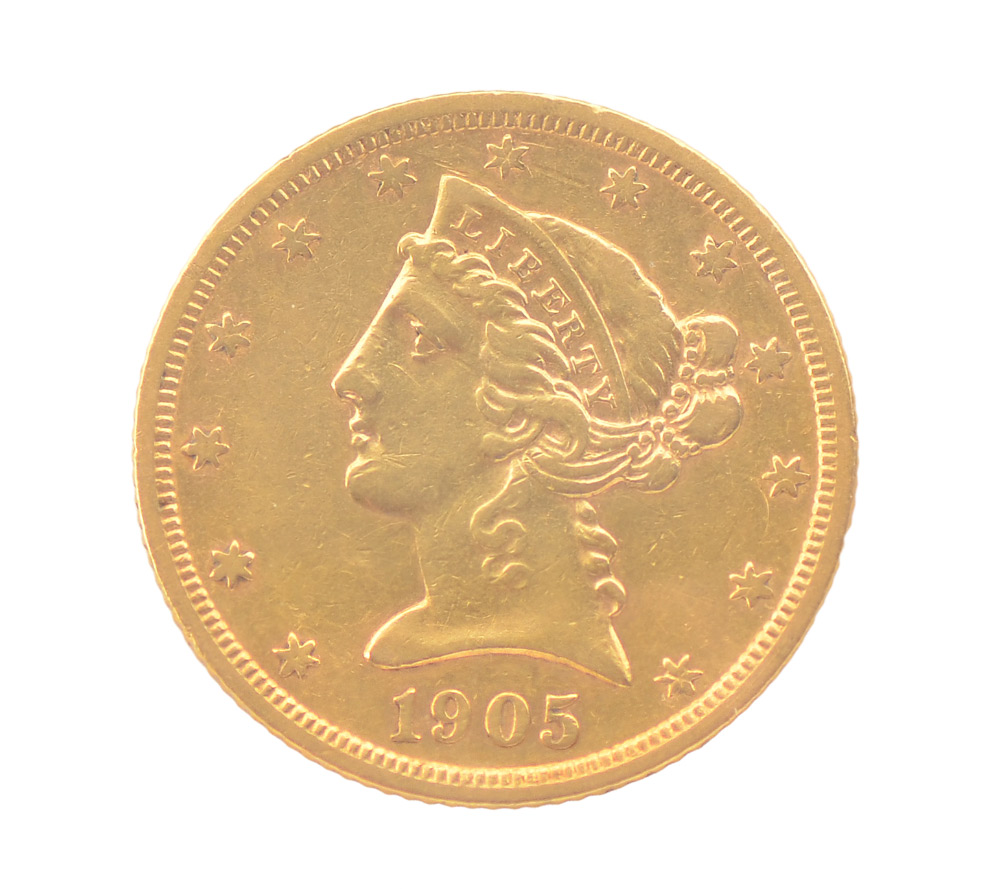 1905-S $5 LIBERTY HEAD GOLD US COIN: Ungraded, approx. 8.3 grams.