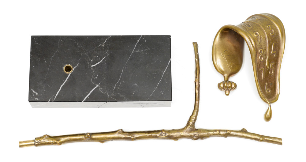 DALI, Salvador, (French/Spanish, 1904-1989): ''Persistence of Memory'', Bronze, numbered 165/350, Foundry marks from Camblest, Venturi Arte, dated 1981, inserts into marble plinth, overall height 16.5'', signed on the melting clock.