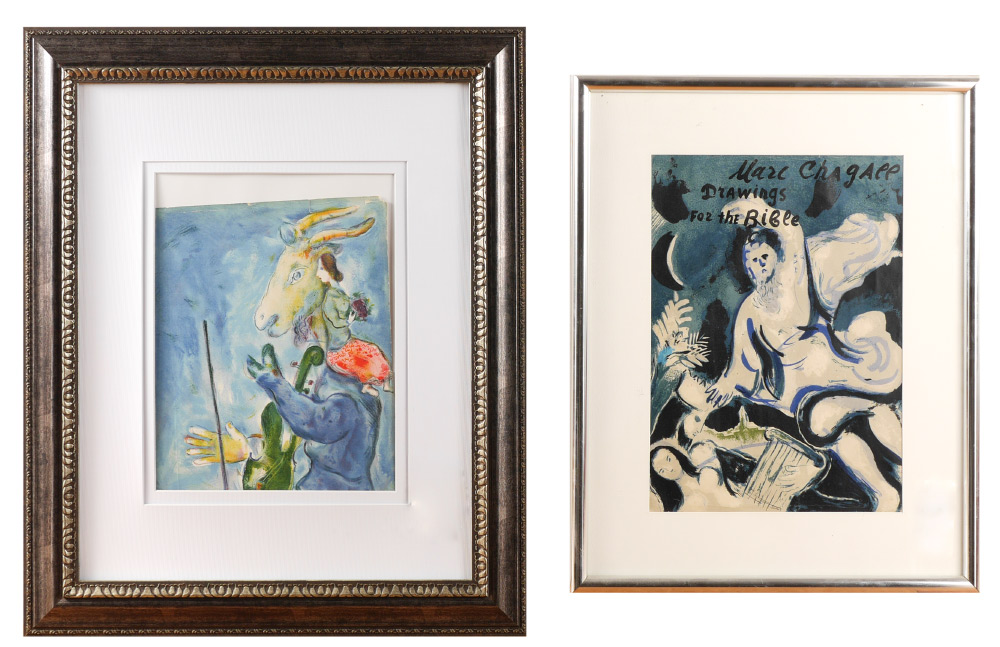 2 MARC CHAGALL LITHOGRAPHS FOR VERVE, 14'' X 10'', framed 24'' x 20''.