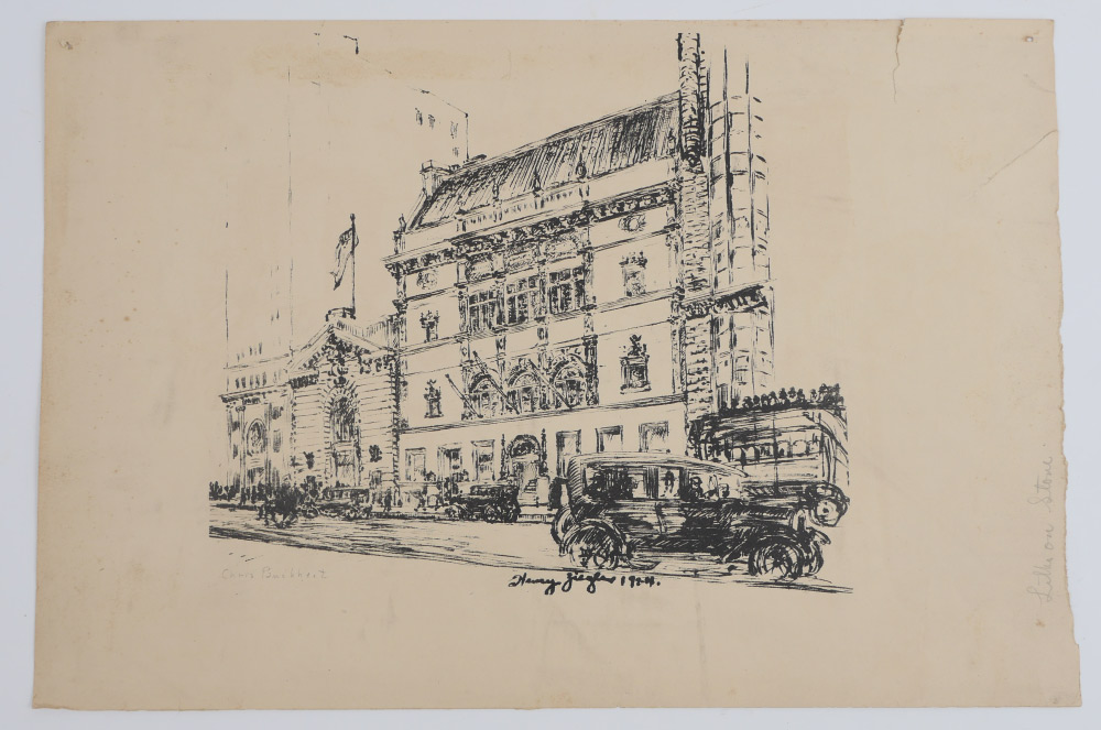 ZIEGLER, Henry (American, 1889-1968): 1) ''Art Students League Building'', Litho on Stone, Black and White, 18'' x 12'', unframed. 2) MASON, Frank, (American, 1921-2009): ''Irish Kitchen?'', Lithograph, 11.25'' x 9.25'', pencil signed lower right, titled, dedicated to Chris Buchheit, numbered 1/25, framed, 20.25'' x 16.25''. Provenance: Estate Collection of Christian Buchheit.