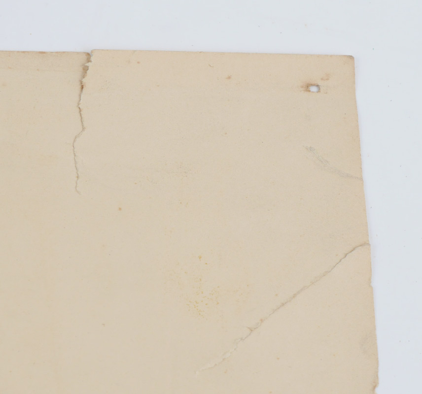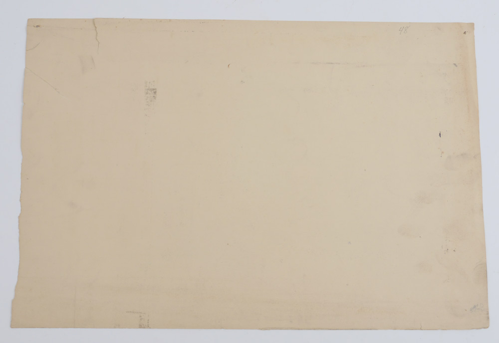 CONDITION: 1)Several tears in upper right corner, pale staining and scattered foxing, 2) Frame shows minor wear, not examnined out of the frame, sold as is.