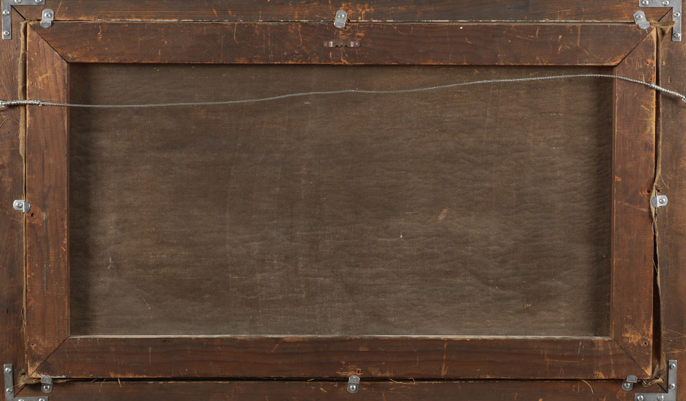 CONDITION: Scattered craquelure with flecks and abrasions, frame shows wear, sold as is.