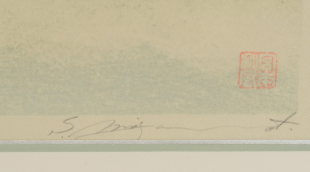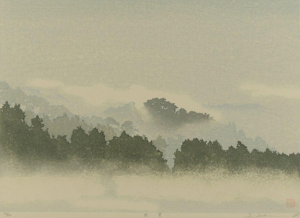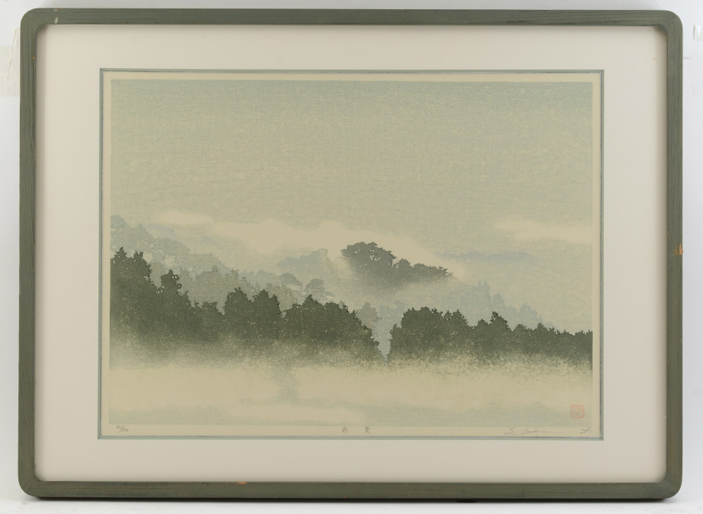 SHUFU, Miyamoto, (Japanese, 1950-): Misty Morning Landscape, Woodblock Print, 13.5'' x 18.5'', pencil signed lower right, titled in Japanese mid-margin, numbered 136/150, custom Kanda B.O.Q. frame, 18.25'' x 24.75''.