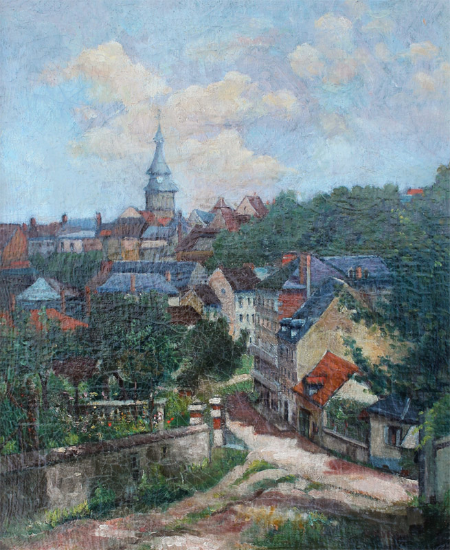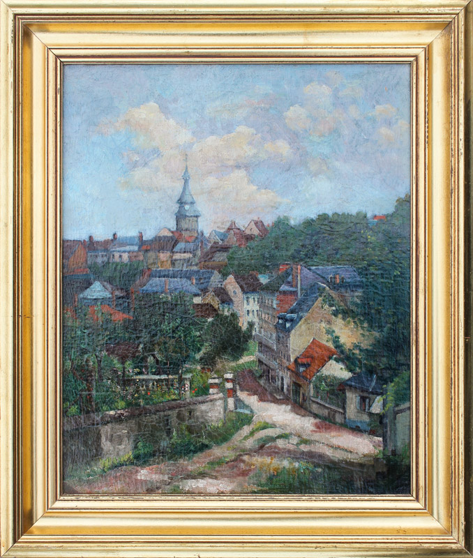 NYROP, Borge, (Danish, 1881-1948): Village Landscape, Oil/Canvas, 18'' x 15'', signed lower right, gilded frame, 22.5'' x 19.25''.