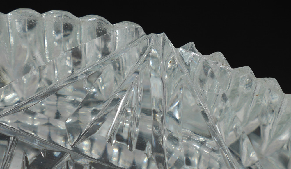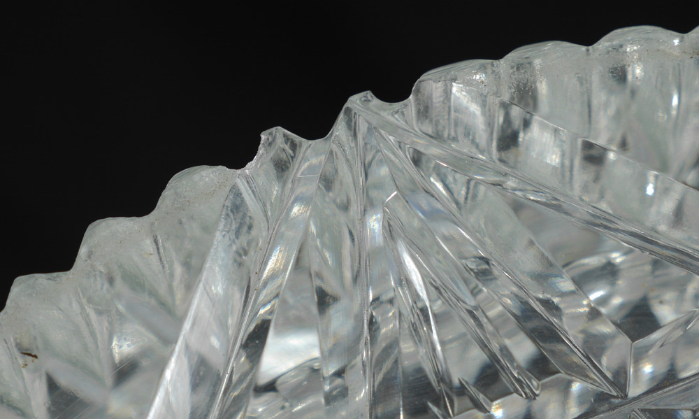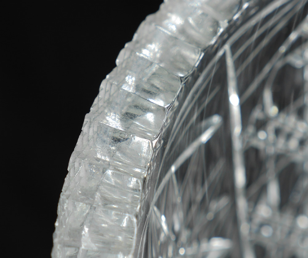 CONDITION: A couple of chips to base, one continues into a small internal fracture. Fleabites to top rim may be found but clever pattern conceals.