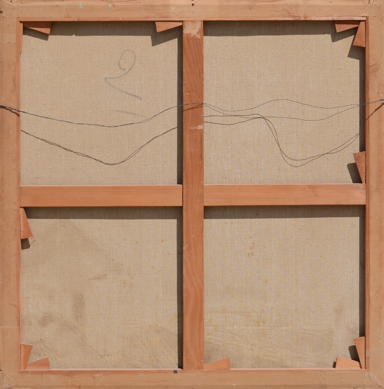 CONDITION: Untouched, scattered craquelure, several minor flecks, frame shows minor wear, sold as is.