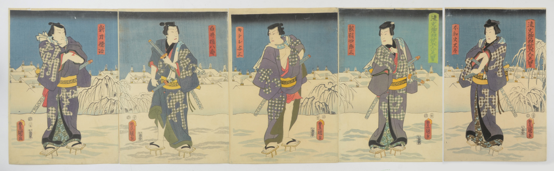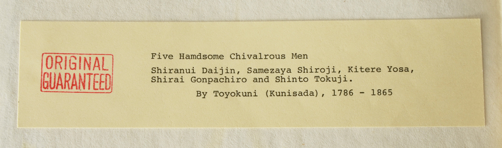 TOYOKUNI, Utagawa (Japanese, 1769-1825): ''Handsome Men'', 5 Separate Woodblock Prints, 14.5'' x 10'', unframed.