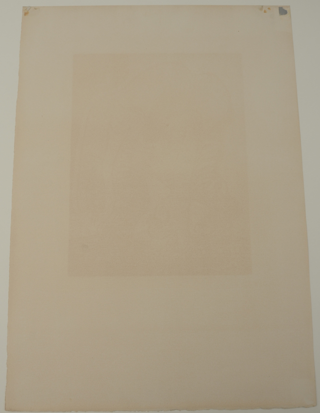 CONDITION: Overall pale browning, minor handling crease in left corner to the right of the numbering in the margin, hairline repair to paper approx. 3'' long in upper left corner, tape remnants in upper margin visible verso with minor paper loss. Some browning in lower margin verso, lower right corner verso, negligible paper loss. Several scattered faint spots, faint discrepancy between exposed paper and margins, faint discrepancy in color with the margin area being lighter.