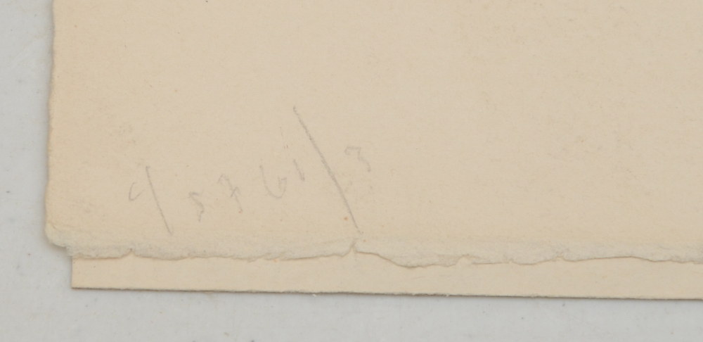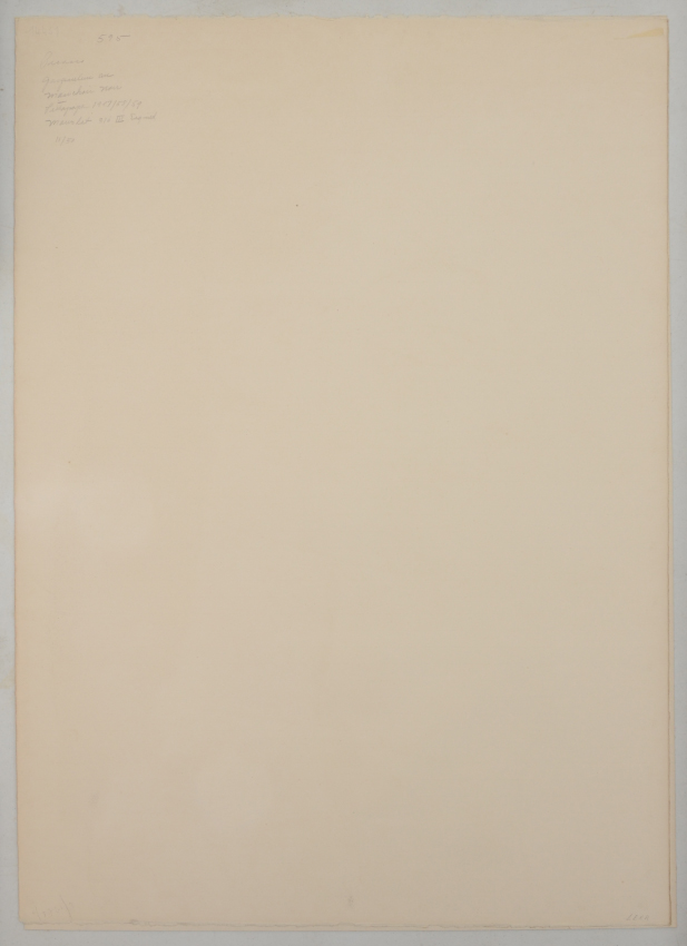 CONDITION: Overall pale browning, darker around edges, pencil markings to bottom lower left margin, tape remnant verso upper right, several scattered pencil markings verso, not laid.