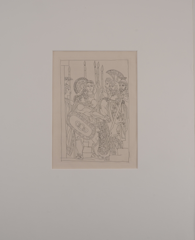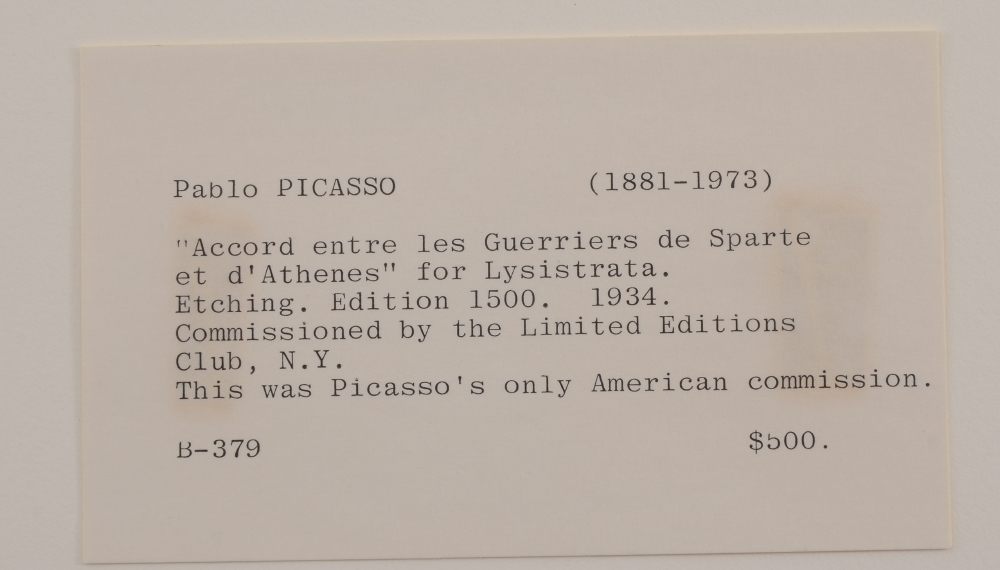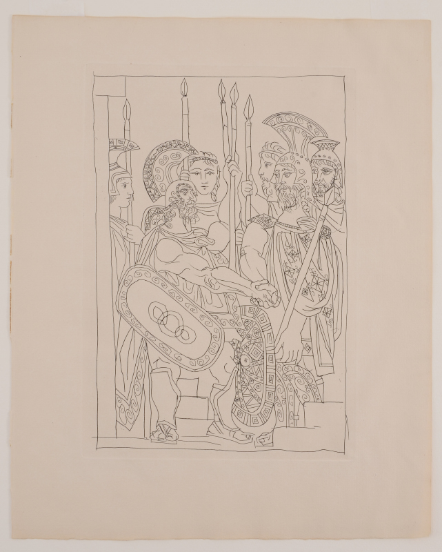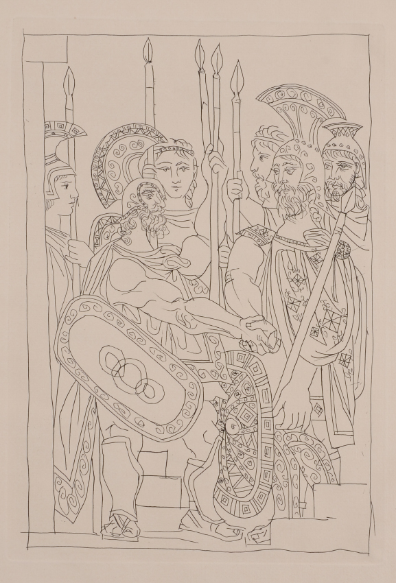 PICASSO, Pablo, (Spanish, 1881-1973): ''Accord Entre Les Guerriers de Spart et D'Athemes'' for Lysistrata, 11.375'' x 9.125'' with margins, unframed, printed in 1934, commissioned by the Limited Editions Club, New York. This was Picasso's only American commission.