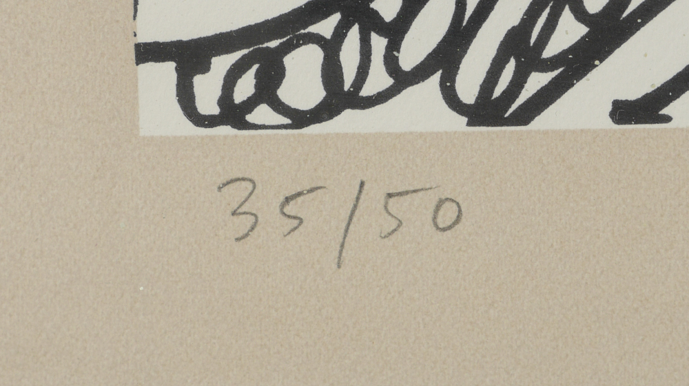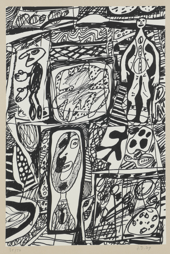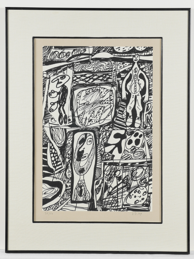 DUBUFFET, Jean, (French, 1901-1985): ''Scenario Bref'', Silk Screen, sight size 22'' x 16'', 25.375'' x 18.375'' full sheet, monogrammed J.D. lower right, dated '79, numbered 39/50 lower left, La Hune blind stamp under mat, fine contemporary framing, 30'' x 23''.