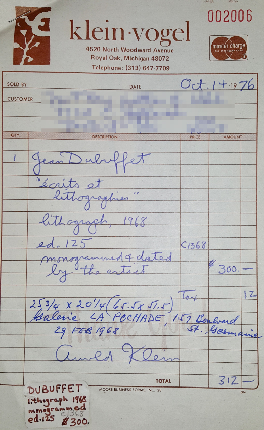 DUBUFFET, Jean, (French, 1901-1985): Ecrits et lithographies for Galerie la Pochade 1968, 25.5'' x 20'' with margins, monogrammed lower right and dated '68, pencil inscribed ''Affiche'' lower left Michel Casse, blind stamp lower left, unframed.