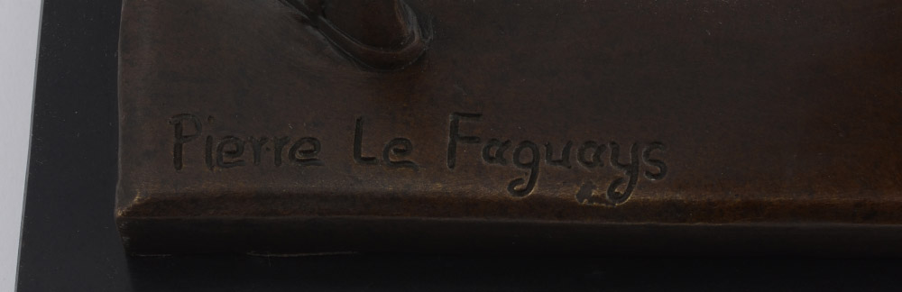 DECO BRONZE ARCHER AFTER FAGUAYS: Bronze, 12 1/4'' h. x 8 3/4'' w. x 2 1/2'' d., affixed to a marble plinth overall measures 13 3/4'' h.