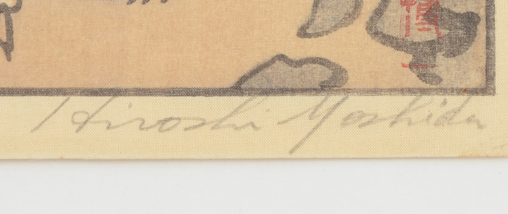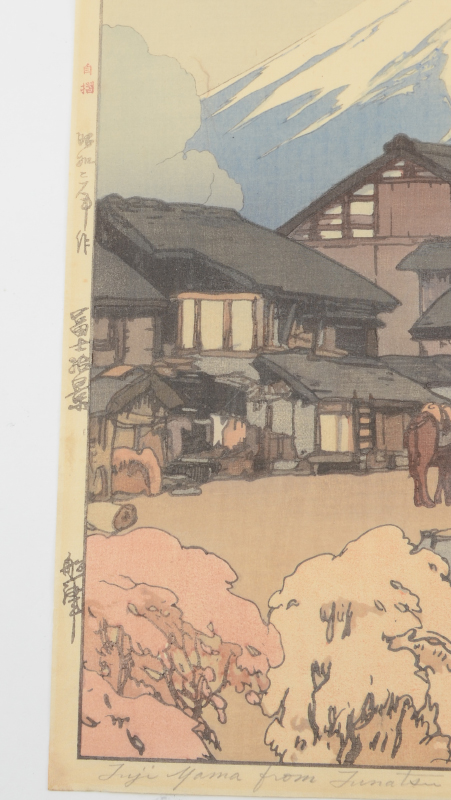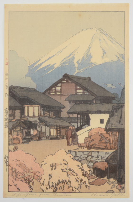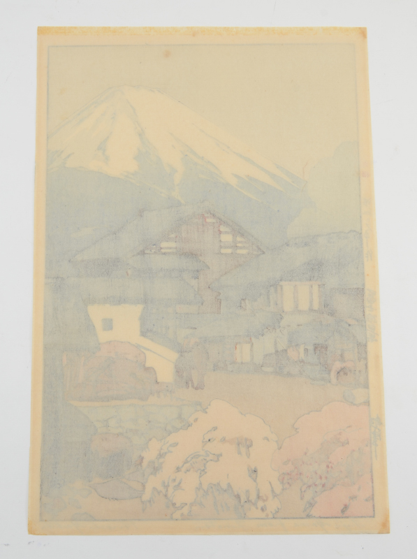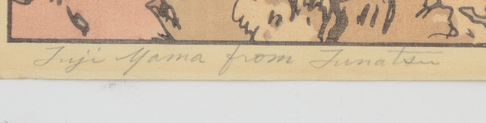 YOSHIDA, Hiroshi, (Japanese, 1876-1950): ''Fuji Yama From Funatsu'', Woodblock, 15.75'' x 10.5'' with margins, pencil signed lower right, titled lower left, Jizuri seal in left margin (self-printed), unframed.
