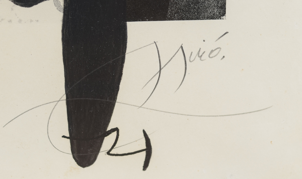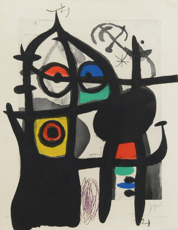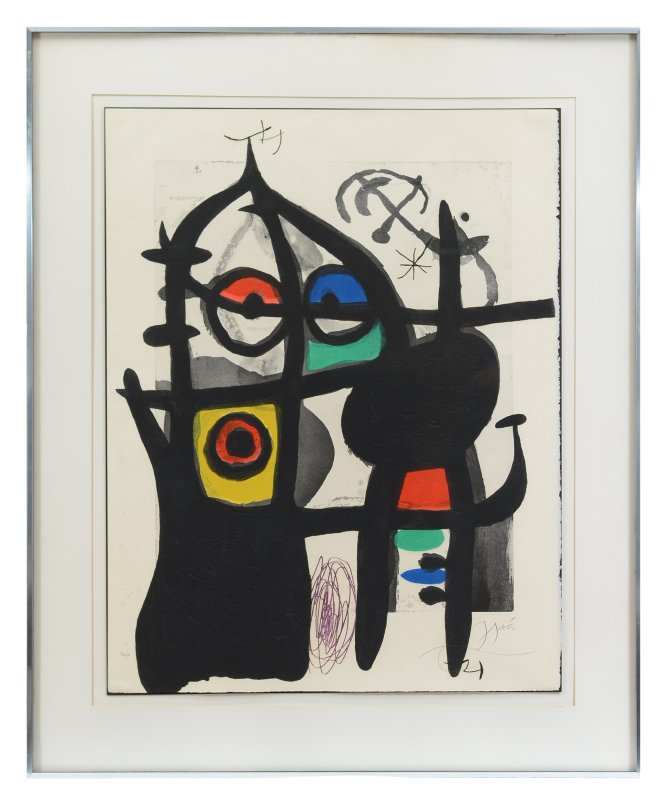 MIRO, Joan, (Spanish, 1893-1983): ''The Captive'', 1969, Etching/Aquatint, 37'' x 28.5'', pencil signed lower right, numbered 36/50 lower left, fine contemporary metal frame, 48'' x 38.75''.