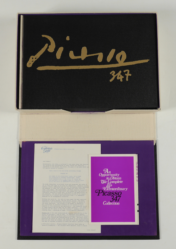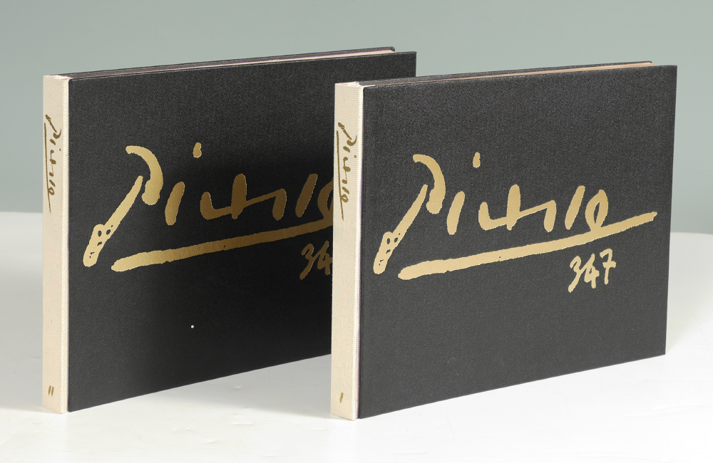 PICASSO, Pablo, (Spanish, 1881-1973): 2 volumes first edition 347 portfolio of engravings books, published by Random House, 1970. Black embossed covers, original black embossed cover hard case, original paper inserts. Overall measures 17 3/4'' x 12 1/2'' x 3 1/2''.