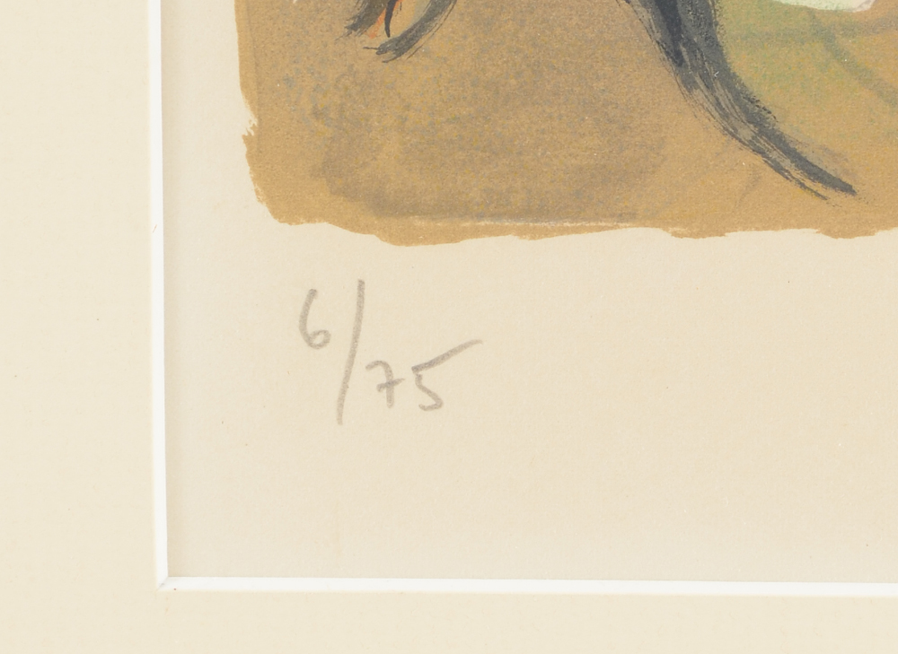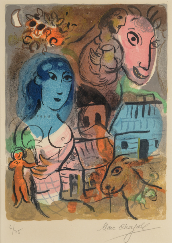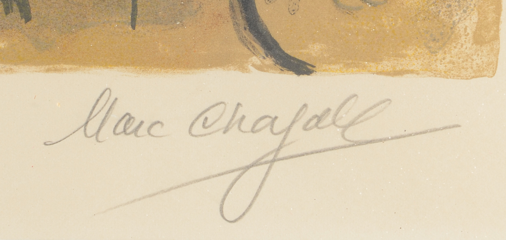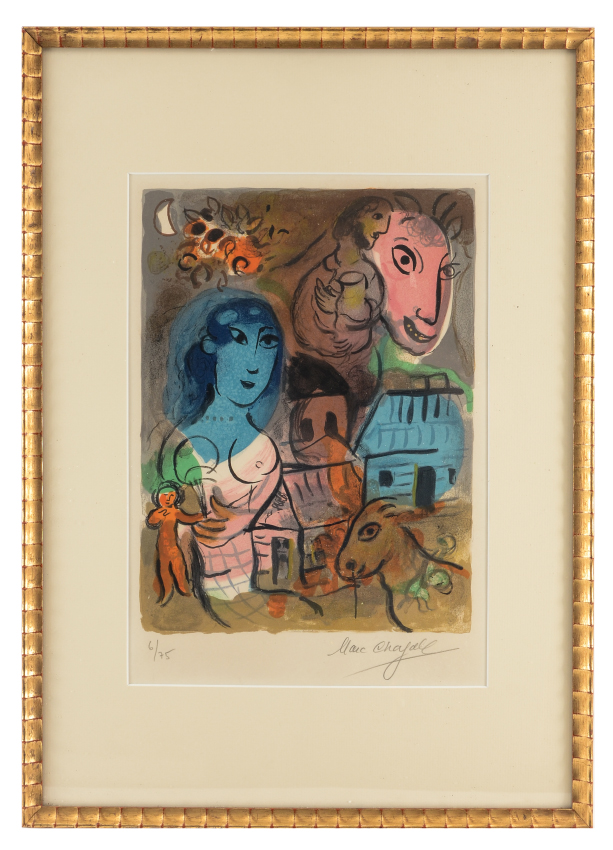 CHAGALL, Marc, (French, 1887-1985): ''Homage a Marc Chagall'', Lithograph, sight size 14.5'' x 10.25'', pencil signed lower right, numbered 6/75 lower left, carved and gilded frame, 22.5'' x 16.25''.
