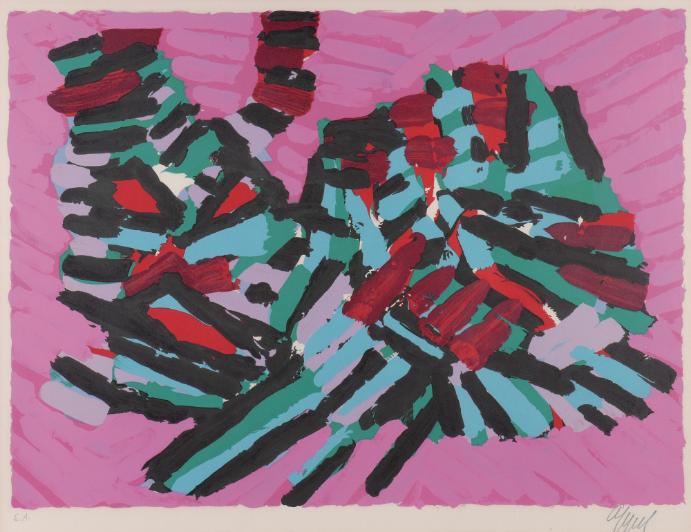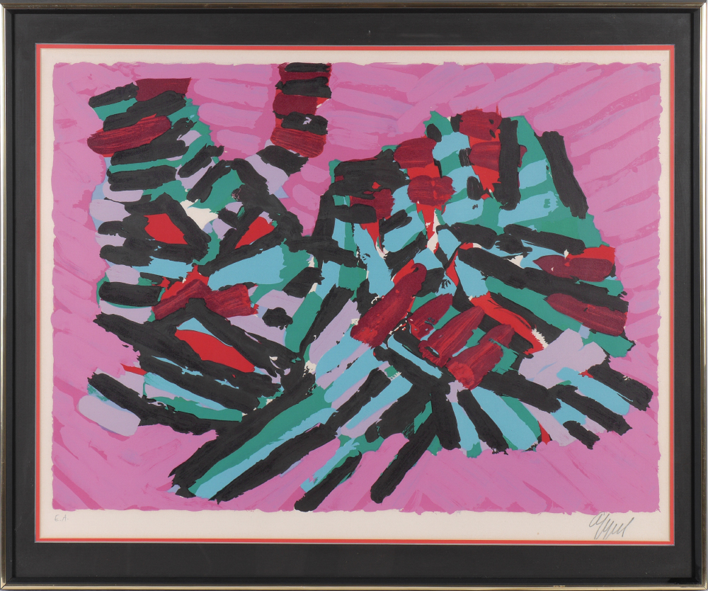 APPEL, Karel, (Dutch, 1921-2006): ''About the Cat'', Artist's Proof Lithograph, sight size 23.75'' x 31'', pencil signed lower right, marked EA lower left, framed, 29'' x 35''.
