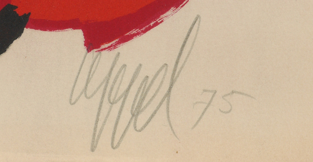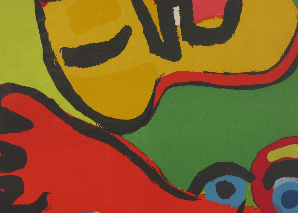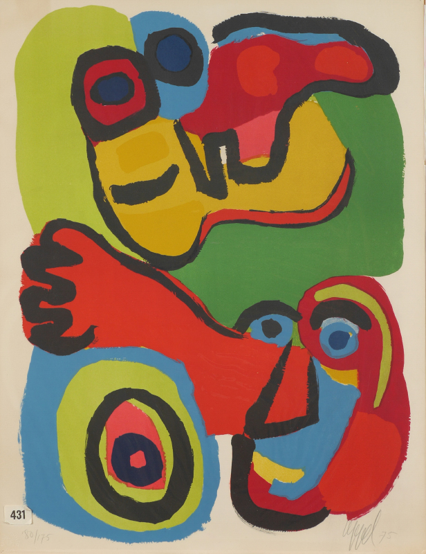 APPEL, Karel, (Dutch, 1921-2006): ''Seeing Eyes'', Lithograph, 25.75'' x 19.5'', pencil signed lower right and dated '75, numbered 80/175 lower left, unframed, under plastic attached to cardboard backing. Transworld blind stamp lower left corner, on Arches paper.