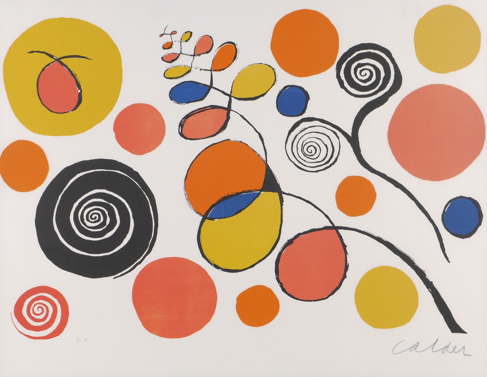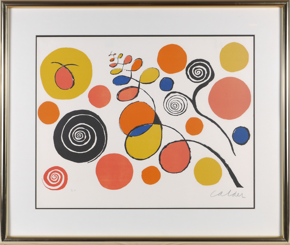 CALDER, Alexander, (American, 1898-1976): ''Musical Variations II'', Lithograph, 23.5'' x 30'', pencil signed lower right, marked EA lower left, metal frame, 34'' x 40''.