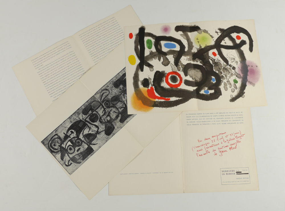 1961 DERRIERE LE MIRIOR JOAN MIRO: ''Ceramique Murale Pour Harvard'', 12 pages, lithographs and photographs, February, 1961, 15'' x 11''.
