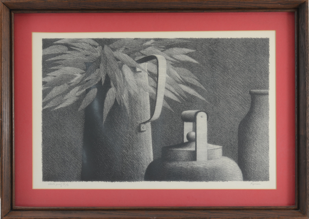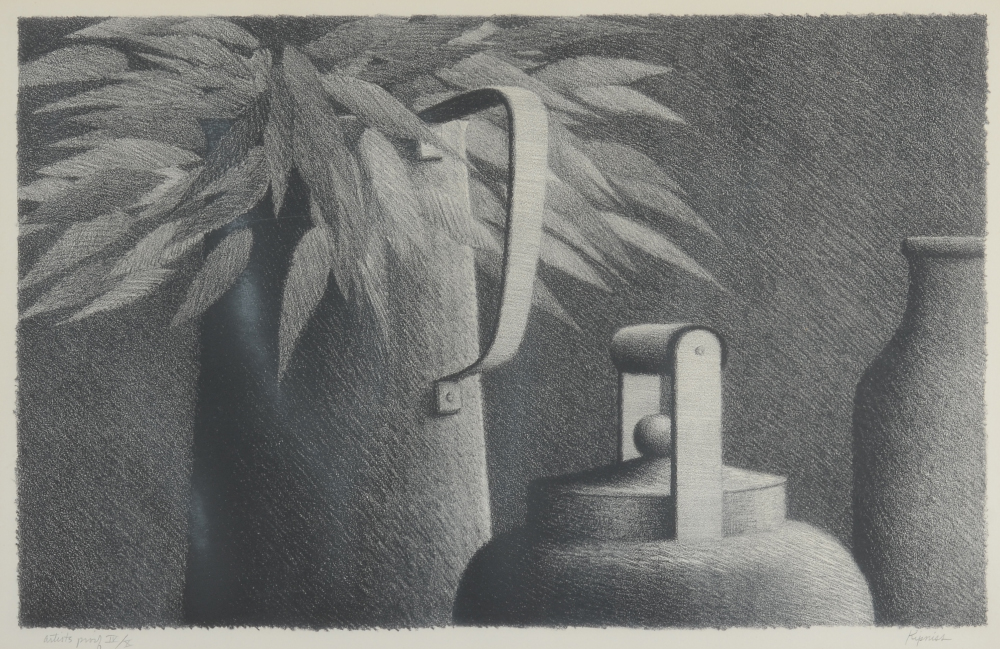 KIPNISS, Robert, (American, 1931-): Still Life with Vessels, Lithograph, sight size 10.75'' x 16.75'', pencil signed lower right, marked artist's proof, IV/X lower left, framed, 15'' x 21.25''.