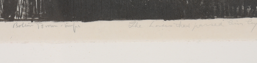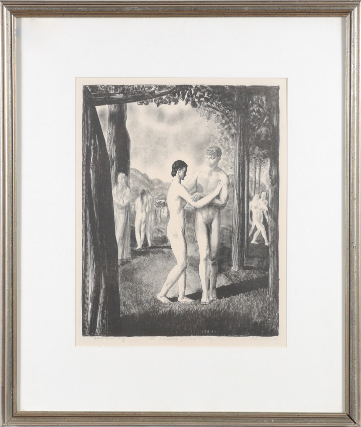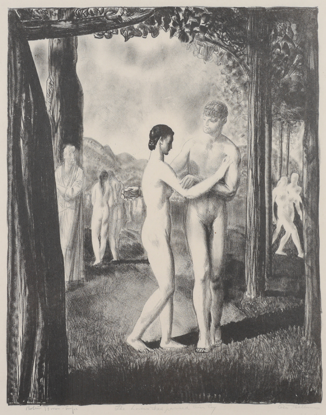 BELLOWS, George, (American, 1882-1925): ''The Lovers That Passed by Him'' 1923, Lithograph, sight size 16'' x 12.5'', pencil signed lower right, titled in lower margin with illegible markings in lower left corner, framed, 25'' x 21''.