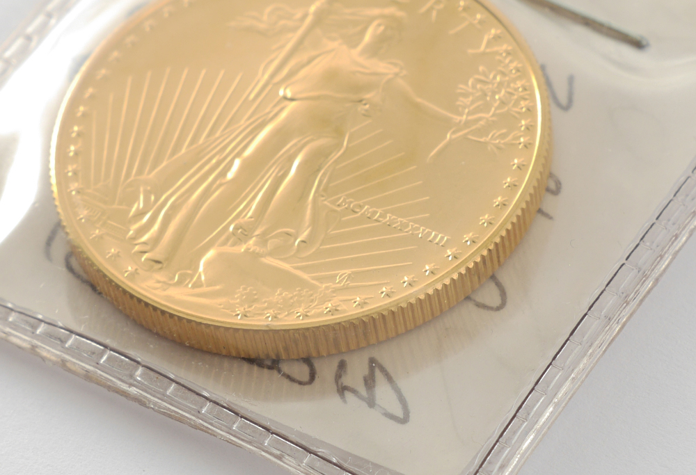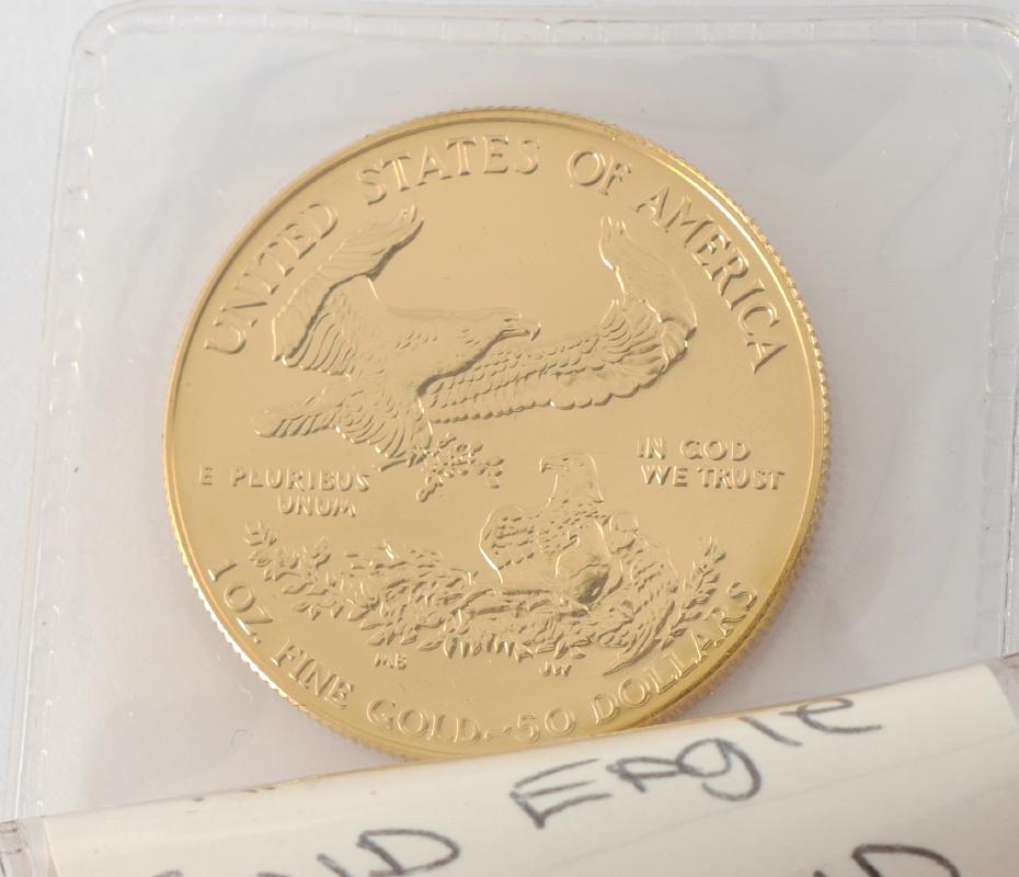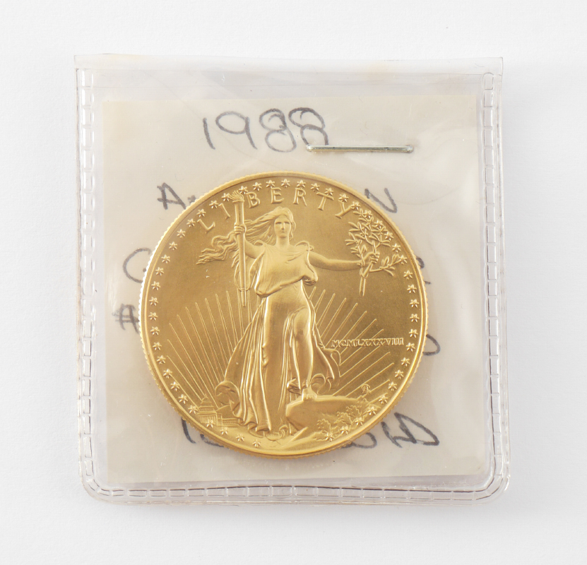 1988 $50 US GOLD EAGLE COIN: 1 oz. fine .916 gold, ungraded.