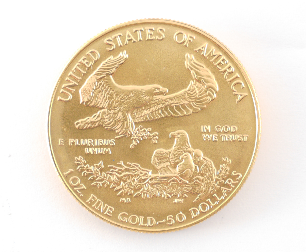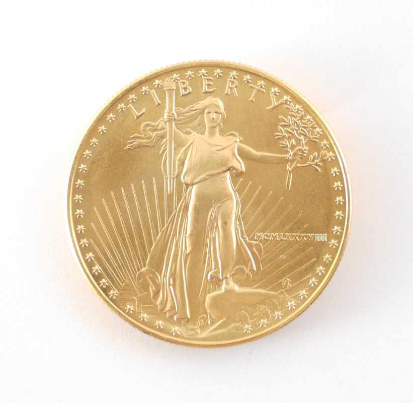 1988 $50 US GOLD EAGLE COIN: 1 oz. fine .916 gold, ungraded.