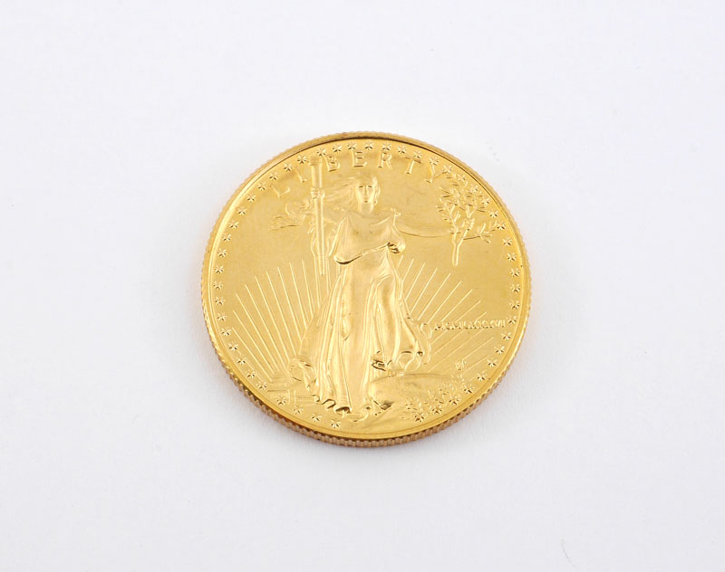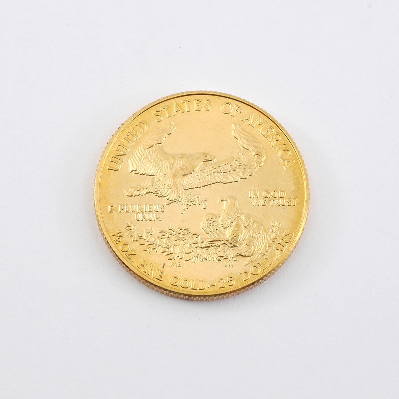 1986 $25 US GOLD EAGLE COIN: 1/2 oz. .916 fine gold, ungraded. Approx 16.9 grams.