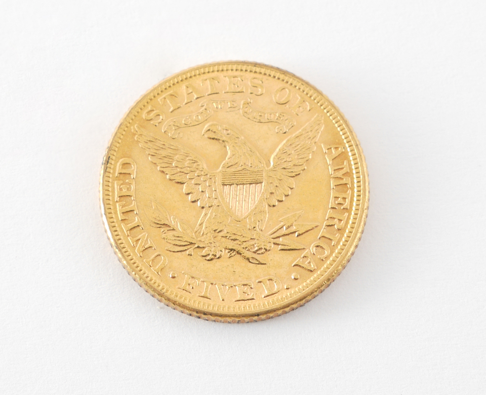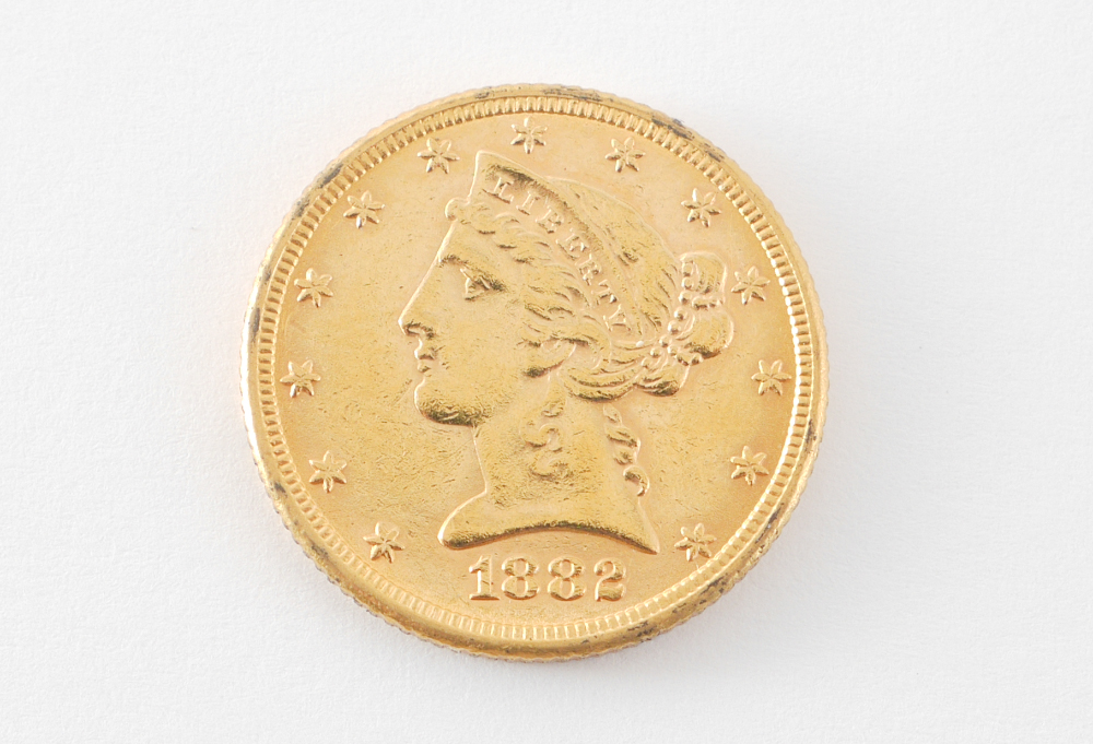1882 $5 US GOLD LIBERTY HEAD COIN: Ungraded, approx. 8.3 grams .900 gold.