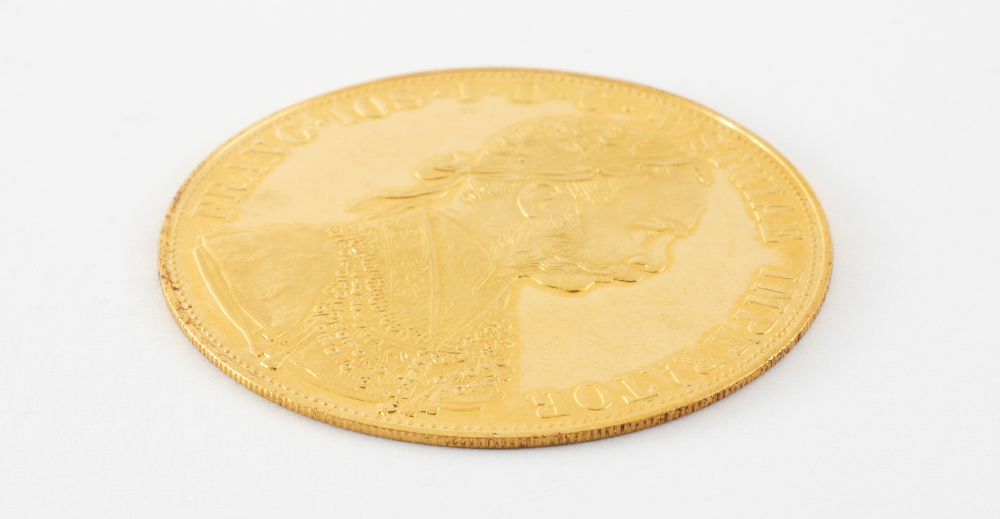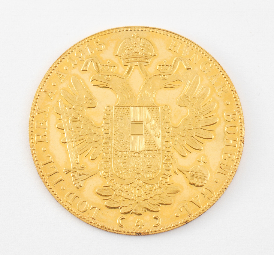 1915 AUSTRIAN 4 DUCAT GOLD COIN: Ungraded, approx. 13.9 grams .986 fine gold.