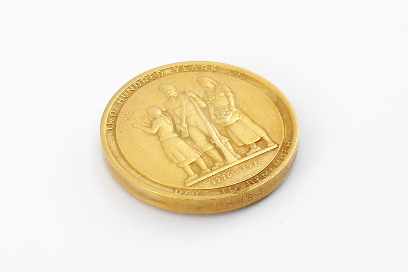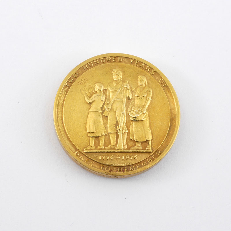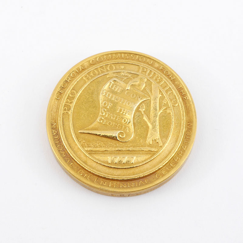 1976 GEORGIA BICENTENNIAL 18K GOLD COIN: 18k coin or medallion made by Medallic Arts to commemorate the Bicentennial for the State of Georgia, 1'' dia, approx. 21 grams.